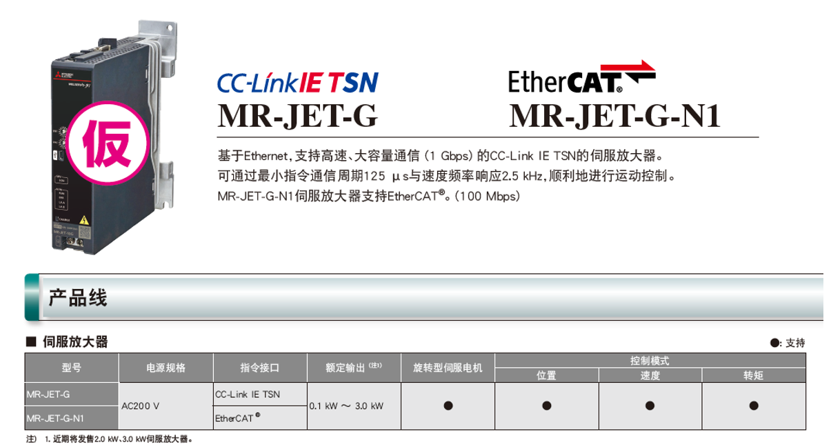 三菱伺服電機(jī)MR-JET-G型號產(chǎn)品介紹: