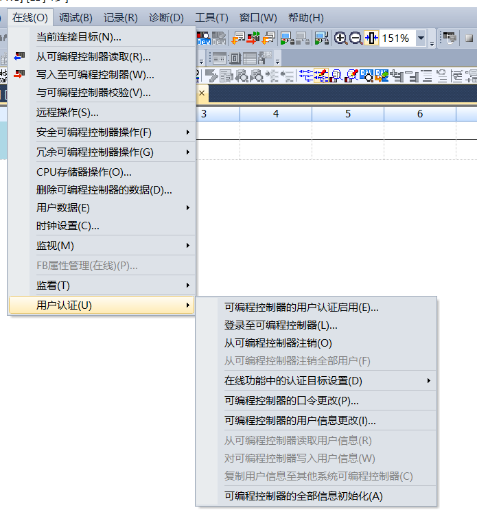 在PLC中用戶認證功能默認是啟用狀態。如果不進行用戶登錄,程序的讀取與寫入及其他功能將無法使用