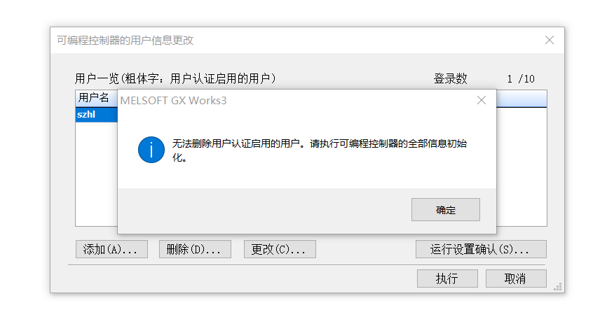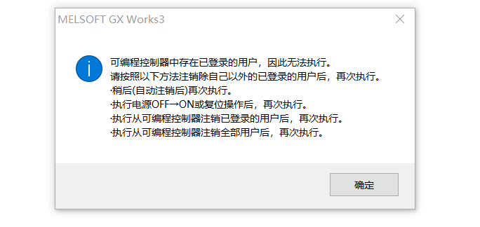 當有其他用戶在登錄中時,無法初始化可編程控制器。可重啟CPU電源,再登錄認證啟用的口令就能成功初始化