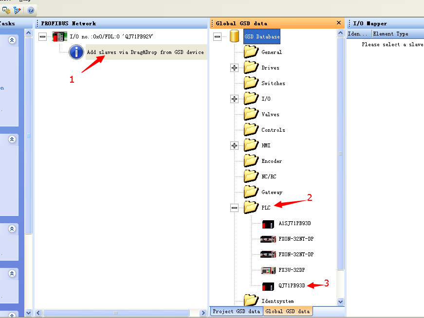 1、單擊添加從站→2、單擊PLC展開→3、雙擊QJ71PB93D(如圖g),
