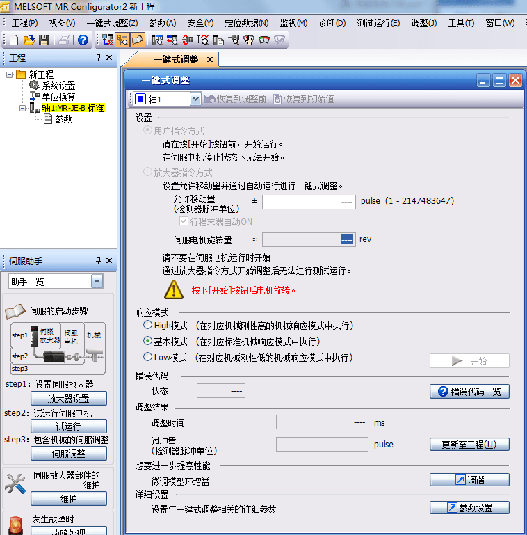 7) 伺服新增<一鍵式調(diào)整>功能,解決現(xiàn)場(chǎng)伺服增益調(diào)整難問(wèn)題,三種模式,一鍵啟動(dòng),自動(dòng)調(diào)整到需要效果;對(duì)機(jī)械共振消除,插補(bǔ)圓弧鋸齒消除,到位擺動(dòng)問(wèn)題輕易解決