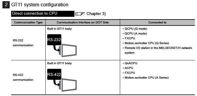 1、使用三菱PLC電纜QC30R2通過RS232方式與PLC通訊,PLC端不用做任何設置。而三菱觸摸屏GT11系列如下圖所示: