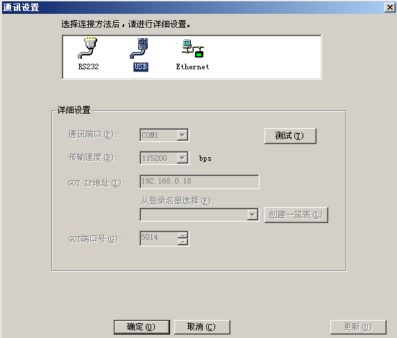 2、筆記本按照以下設置通過三菱觸摸屏的USB口與三菱觸摸屏建立通訊連接。