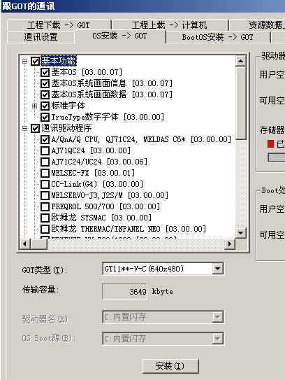 4、再安裝OS,注意GOT類型不要選錯,應為GT11**V-C(640x480)