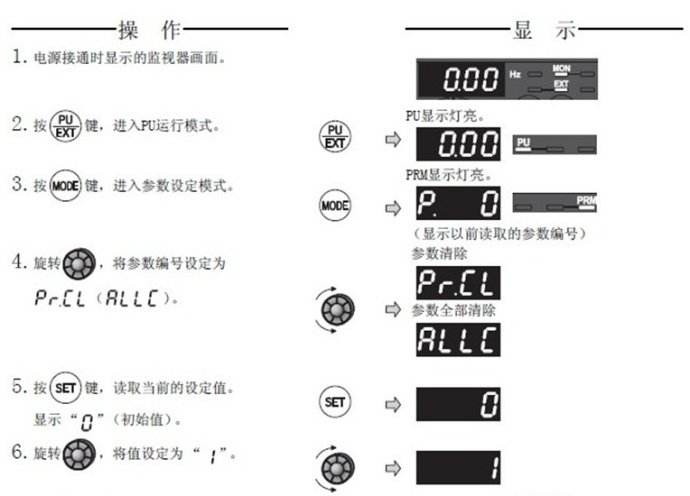 三菱變頻器F740系列恢復(fù)出廠設(shè)置該怎么操作?