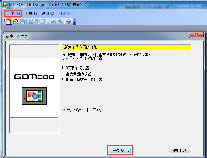 2.1.1單擊菜單欄【工程】→[新建]→[下一步]